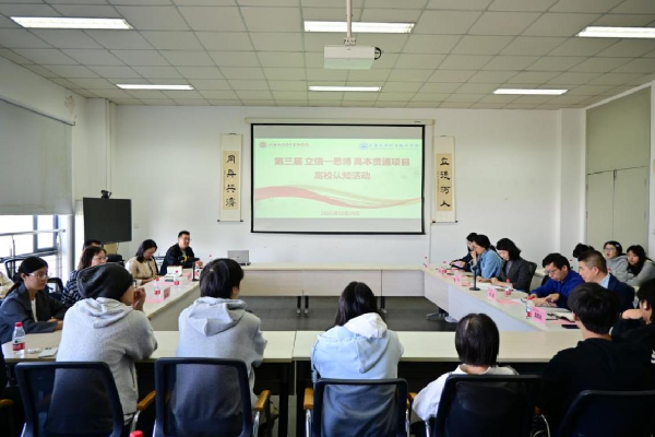 2025年10月29日,第三届立信-思博国际商务专业高本贯通项目高校认知活动在五教414会议室顺利举行。国际经贸学院党委副书记、副院长(挂职)程杨,国际商务专业主任杨勣,思博职业技术学院商学院常务副院长王云玺、副院长于丽艳、国际商务教研室主任乐飞红,部分教师、辅导员、国商专业优秀学生代表和2025级36名国商高本贯通班全体学生共同参加本次活动。