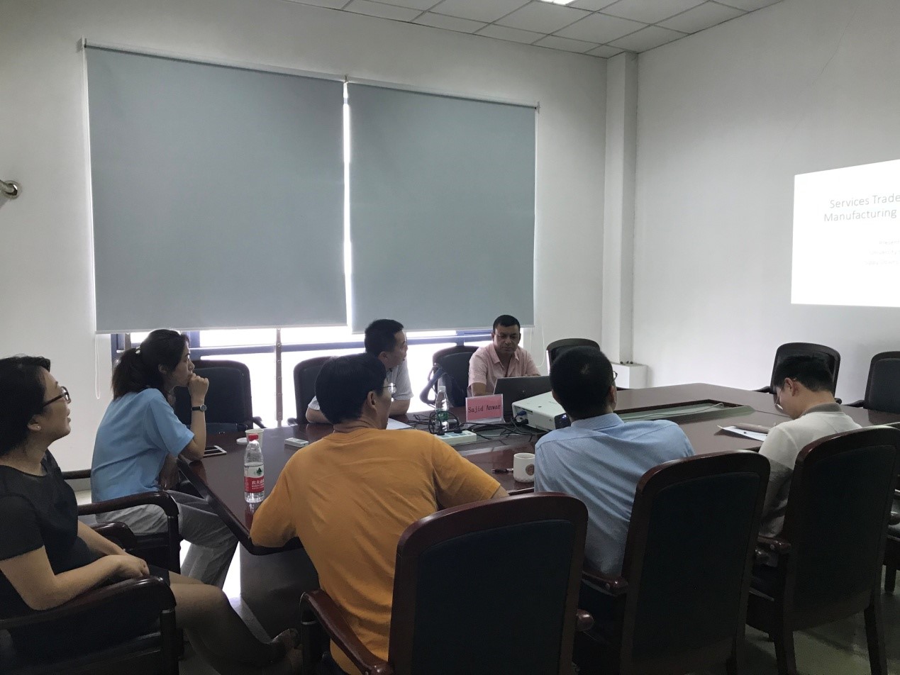 此次讲座主要探讨服务贸易自由化的重要性,利用2005年-2014年期间来自36个国家的服务贸易限制数据,调查了服务贸易限制对制造业出口复杂度的影响。服务贸易限制对制造业出口复杂程度具有负面且统计上显著的影响,政府政策特别是服务贸易自由化,可以帮助提高上游制造业的生产率,重塑生产和出口结构。Anwar教授认为要更加重视现代服务业,如金融服务、信息服务、计算机编程、法律和会计服务等。通过服务贸易自由化,发展中国家可以以更低的价格获得高质量服务,以服务业贸易自由化为基础的发展战略能否成功,很大程度上取决于国家间的合作。与会教师就研究内容与Anwar教授进行了深入交流讨论。