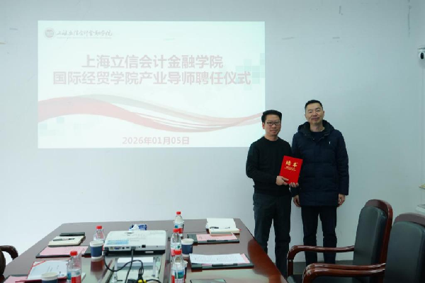 为深化产教融合,加强师资队伍建设,学院于2026年01月05日中午在第五教学楼404会议室举行上海立信会计金融学院客座教授及国际经贸学院产业导师聘任活动。学院特邀上海市新型互联网交换中心有限责任公司总经理张茜和产品副总监黎建伟参加,学院党委书记孙翼,副书记、院长毕玉江以及部分班子成员出席本次活动。活动由孙翼主持。