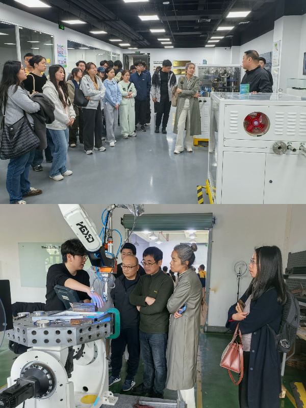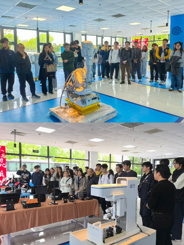 参观环节,史威与马明普共同带领学生走进园区内多家重点人工智能与机器人企业。通过将课堂搬到企业上的现场教学,同学们对人工智能在区域生态构建、教育赋能、企业数字化转型等方面的实际应用与产业落地,建立了更加直观和深入的认识。