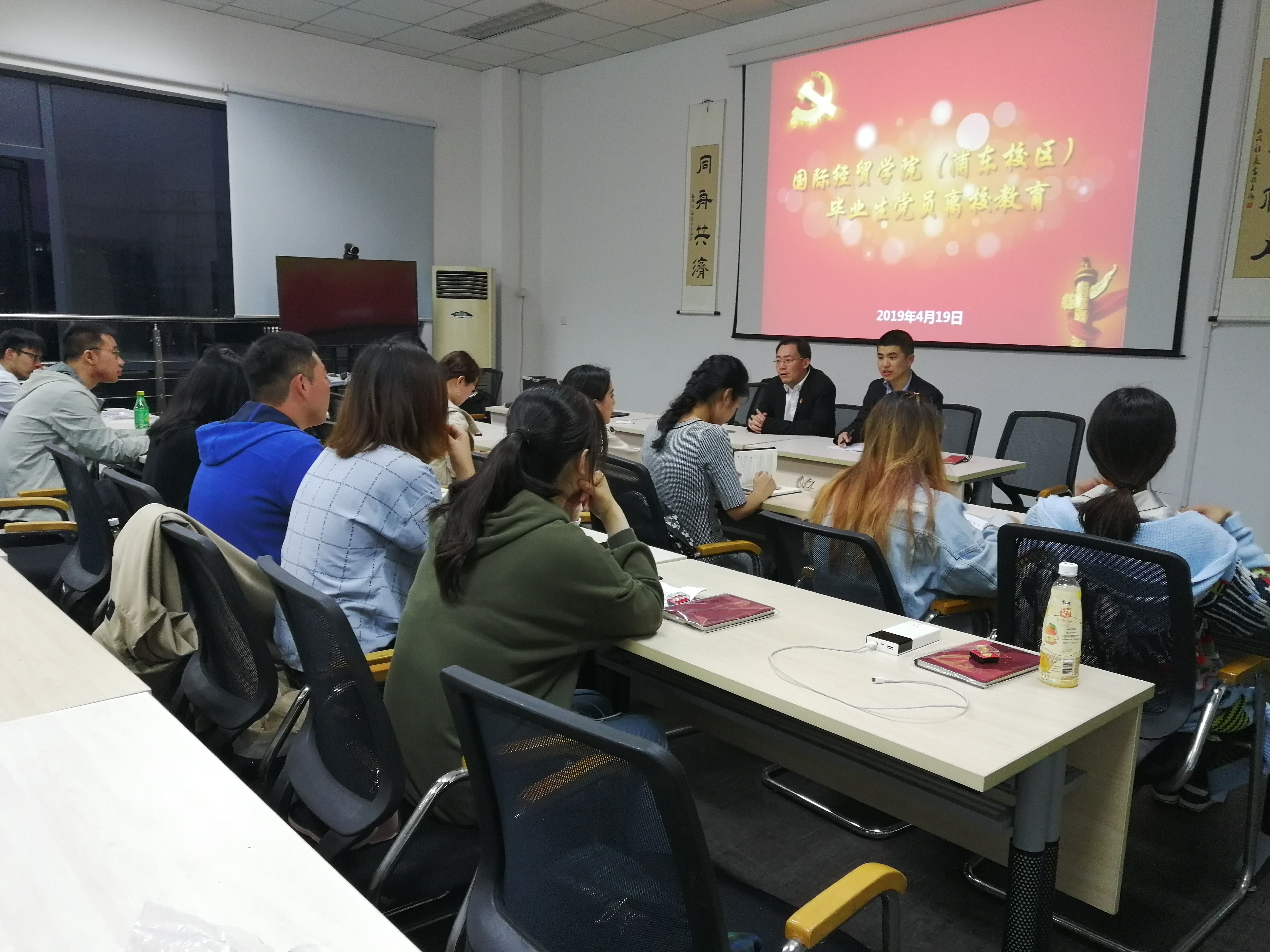 为进一步强化毕业生党员的身份意识,切实抓好毕业生党员党性教育,做好毕业生党员的党组织关系转移,4月18日,国际经贸学院党总支分别在松江和浦东校区举行毕业生党员离校教育。国际经贸学院党总支书记程振强、兼职组织员赵凤欣以及全体毕业生党员参加本次教育活动。
