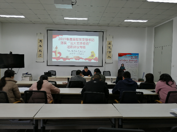 为深入学习贯彻党的十九大精神和习近平新时代中国特色社会主义思想,进一步推动全面从严治党向基层延伸,推动基层党支部全面进步。12月25日,根据校党委工作安排部署,国际经贸学院组织召开2019年度基层党支部书记落实“三大主体责任”述职评议考核会。学院领导班子、支部书记、专职组织员参加会议,会议由学院党总支书记程振强同志主持。