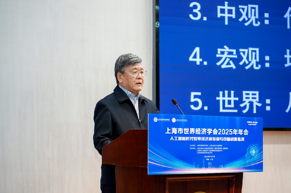 主旨报告环节分两个阶段,共有5位资深专家发表演讲。上海市世界经济学会名誉会长、上海社会科学院世界经济研究所张幼文研究员做了题为“人工智能革命后的世界经济”的主旨演讲,分析了人工智能作为人类历史上第四次革命,对中国经济和世界经济带来的深刻影响和变革。他指出,在微观层面,AI技术颠覆了传统生产要素的权重,数据与算法成为新竞争优势的核心,劳动力密集型产业面临重构,全球价值链加速向区域化、本地化转型,企业需重塑供应链以应对不确定性。在中观层面,制造业、金融业等传统领域通过AI实现智能化升级,而新兴产业如生成式AI服务等则呈现高创新性、快速迭代和网络效应特征,催生新业态。在宏观层面,他强调AI推动经济从高速增长转向高质量发展,生产效率提升但伴生结构性失业风险,福利分配需强化数字包容政策,以缩小区域和群体间的数字鸿沟。从全球来看,他呼吁各国超越零和博弈,在AI伦理标准、数据跨境流动和网络安全等领域建立多边协作机制,共同应对技术失控风险,促进全球经济稳定与可持续发展。